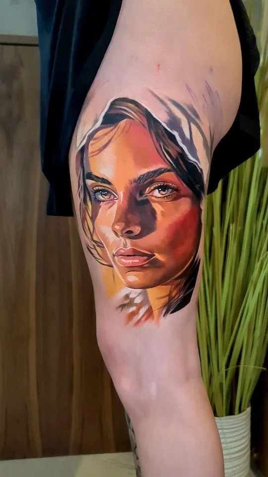 These stunningly detailed faces each carry a touch of the supernatural. With intricate lines and a mix of subtle beauty and dark vibes, these designs bring elegance to Halloween horror. Whether it’s the swirling mist-like shapes around the face or the skeletal details woven into the expressions, these tattoos bring an otherworldly beauty to your ink.